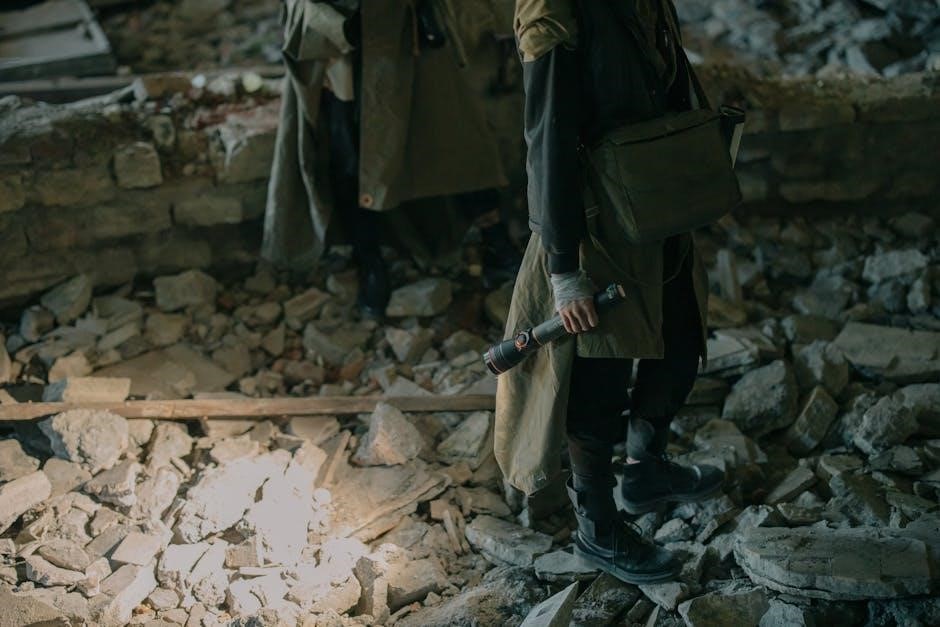 In Ruined‚ Lynn Nottage explores the moral and ethical dilemmas faced by individuals in a war-torn society. The play delves into the gray areas between right and wrong‚ where survival often demands compromises. Mama Nadi‚ the brothel owner‚ embodies this complexity‚ as she navigates the harsh realities of protecting her business while exploiting the vulnerabilities of others. The characters’ choices—whether to resist‚ adapt‚ or succumb—reflect the ethical struggles of living in a society fractured by violence and exploitation. The play challenges audiences to consider how morality is reshaped in extreme circumstances‚ where traditional notions of right and wrong are tested by the imperative to survive. Nottage’s portrayal of these ethical conflicts underscores the human cost of war and the resilience required to maintain dignity in the face of despair.